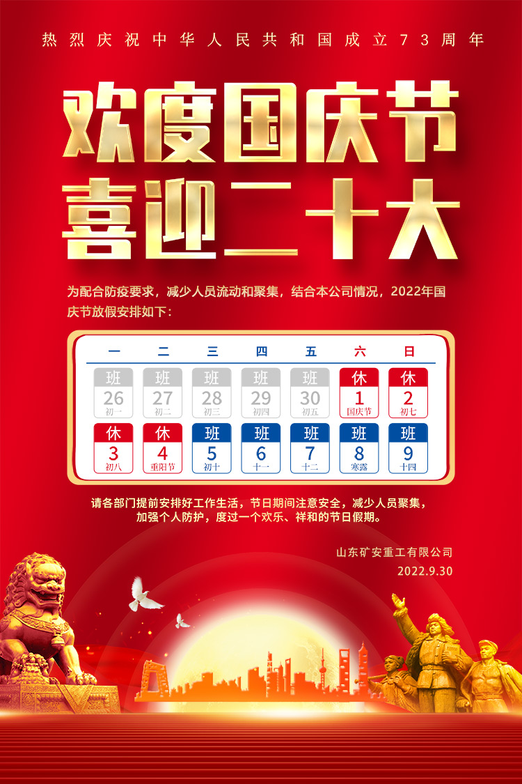 山东矿安机电有限公司2022年国庆节放假通知